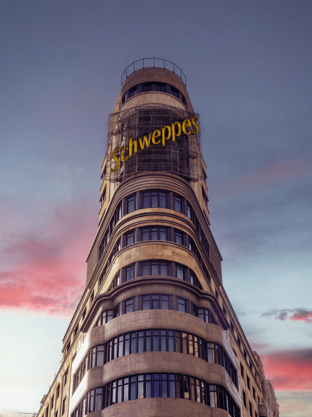 - Edifício Carrión (Edifício Capitol): Na região de Callao, este prédio em estilo Art Déco é famoso pelo letreiro luminoso da Schweppes. É um dos cartões-postais mais conhecidos de Madrid.