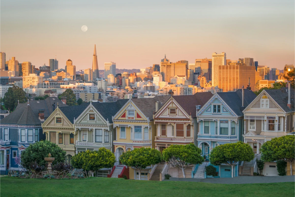 Este é um dos cenários mais fotografados de São Francisco. As Painted Ladies são um conjunto de casas vitorianas coloridas e perfeitamente preservadas, com o skyline da cidade ao fundo. A vista do gramado do Alamo Square é clássica e rende fotos espetaculares, especialmente no final da tarde.
