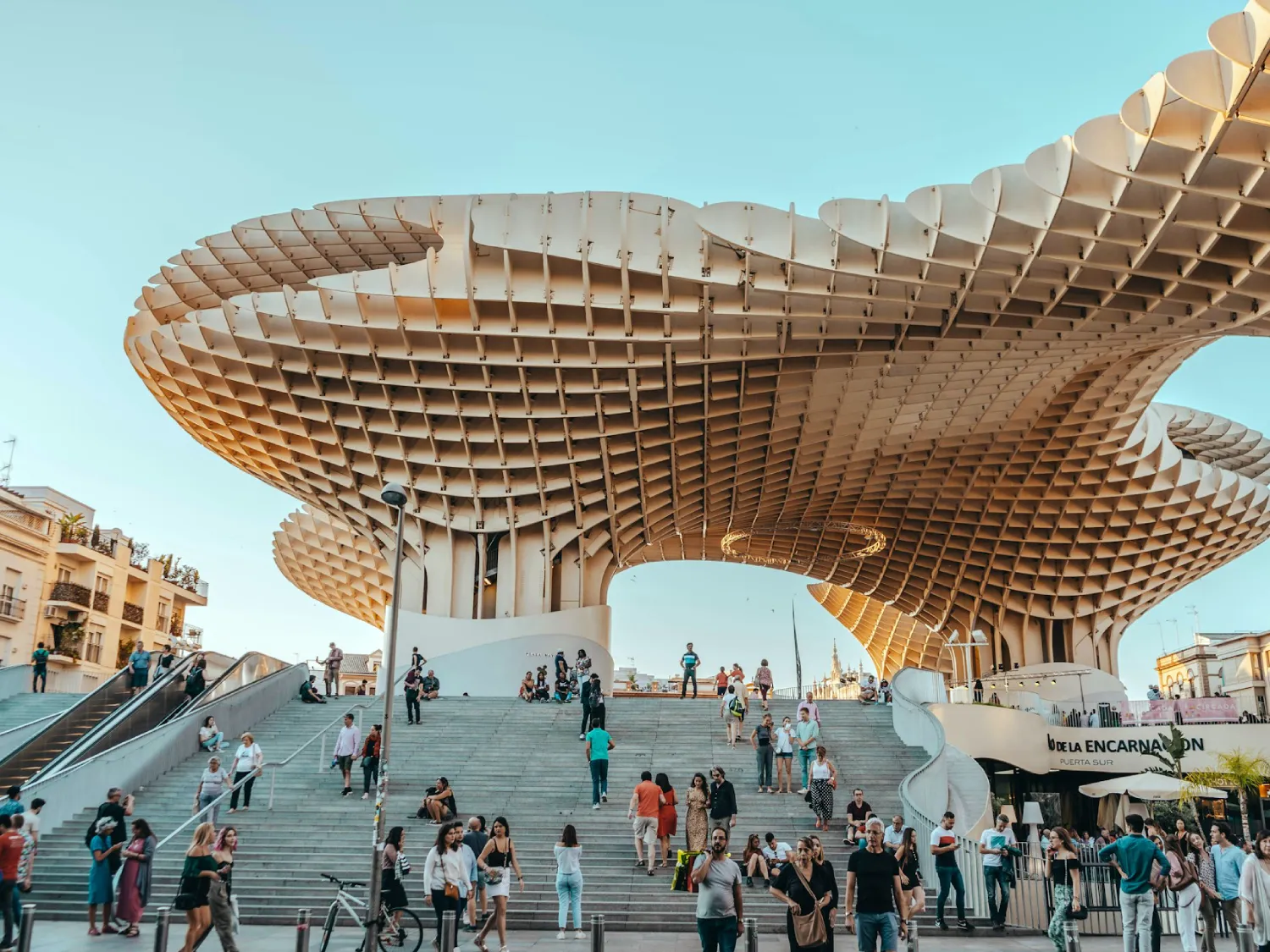 Para quem acha que Sevilha vive apenas de passado, as Setas de Sevilha (Cogumelos de Sevilha) provam o contrário. Oficialmente chamado de Metropol Parasol, é a maior estrutura de madeira do mundo.