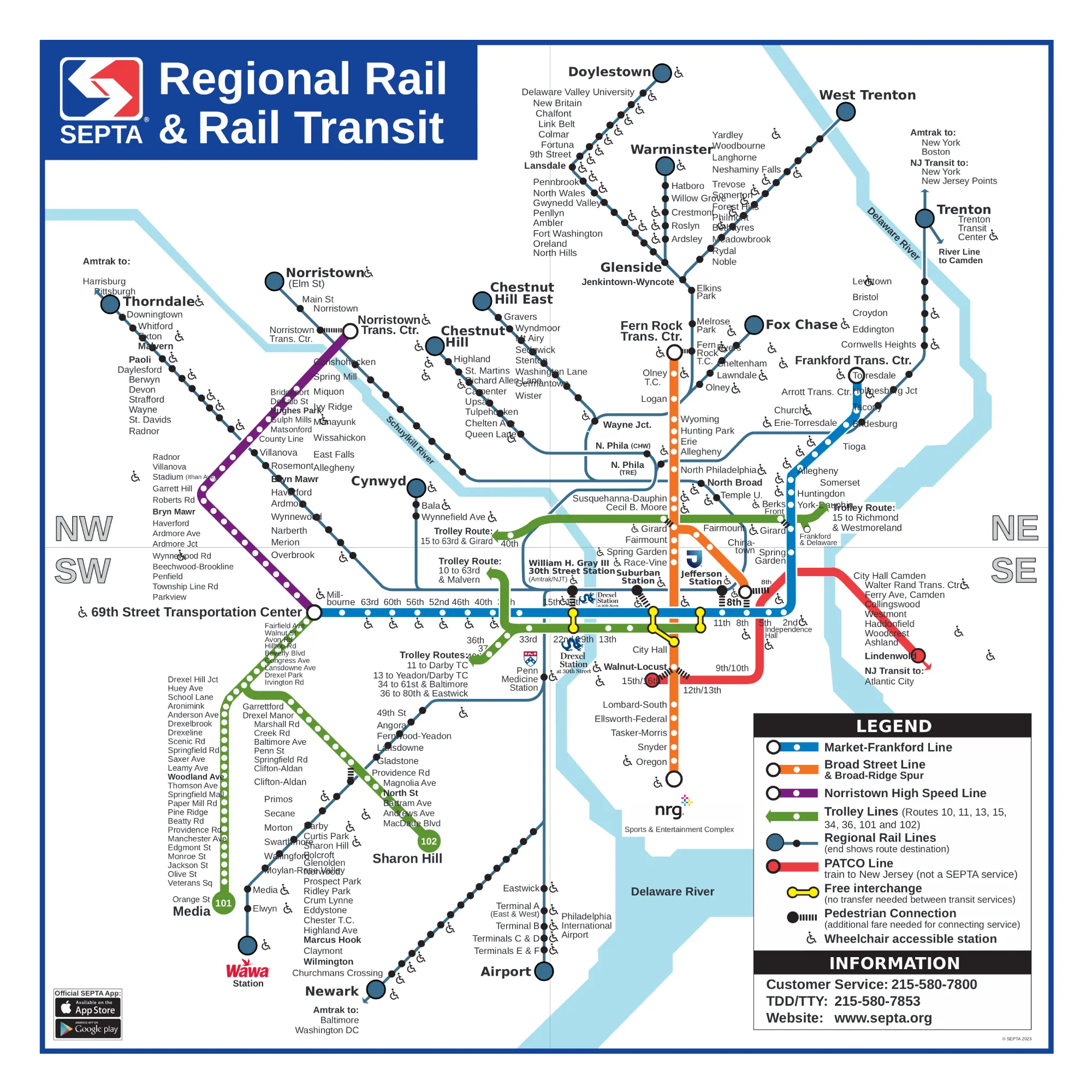 - Linhas principais: A Market-Frankford Line (Azul) e a Broad Street Line (Laranja) cobrem os principais pontos turísticos.