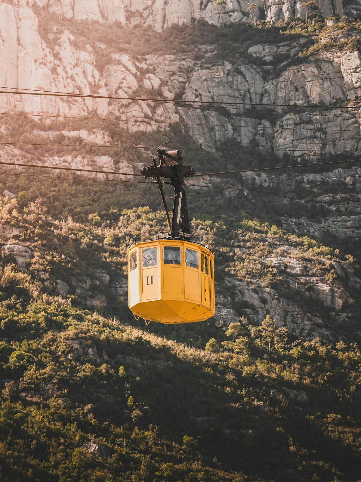 Para viver essa experiência, você deve descer na estação Montserrat-Aeri. O teleférico amarelo é a forma mais rápida e emocionante de subir, oferecendo uma vista aérea espetacular do vale. A viagem dura apenas cinco minutos, mas rende fotos incríveis.