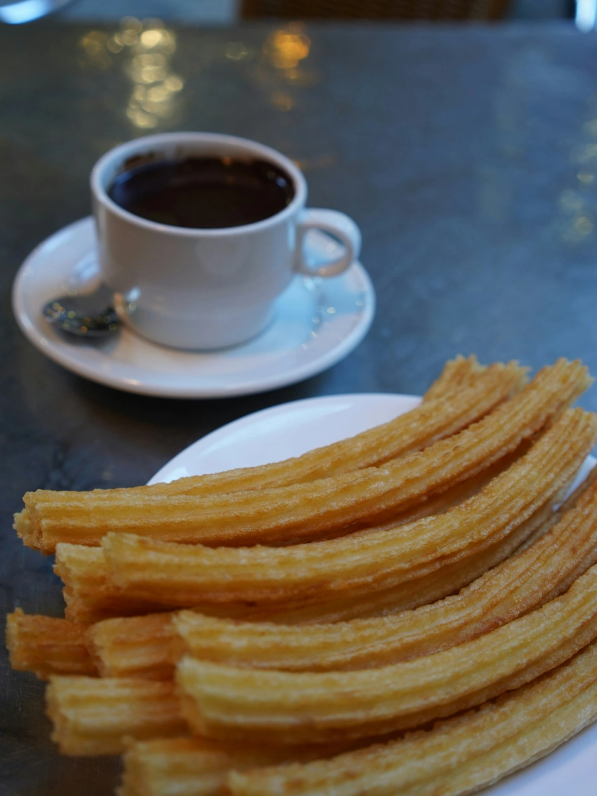 A poucos passos da praça, na Pasadizo de San Ginés, está a chocolateria mais famosa da Espanha. Aberta 24 horas (ou quase isso), a San Ginés serve o tradicional chocolate con churros desde 1894. O chocolate é espesso, quente e perfeito para mergulhar os churros crocantes.