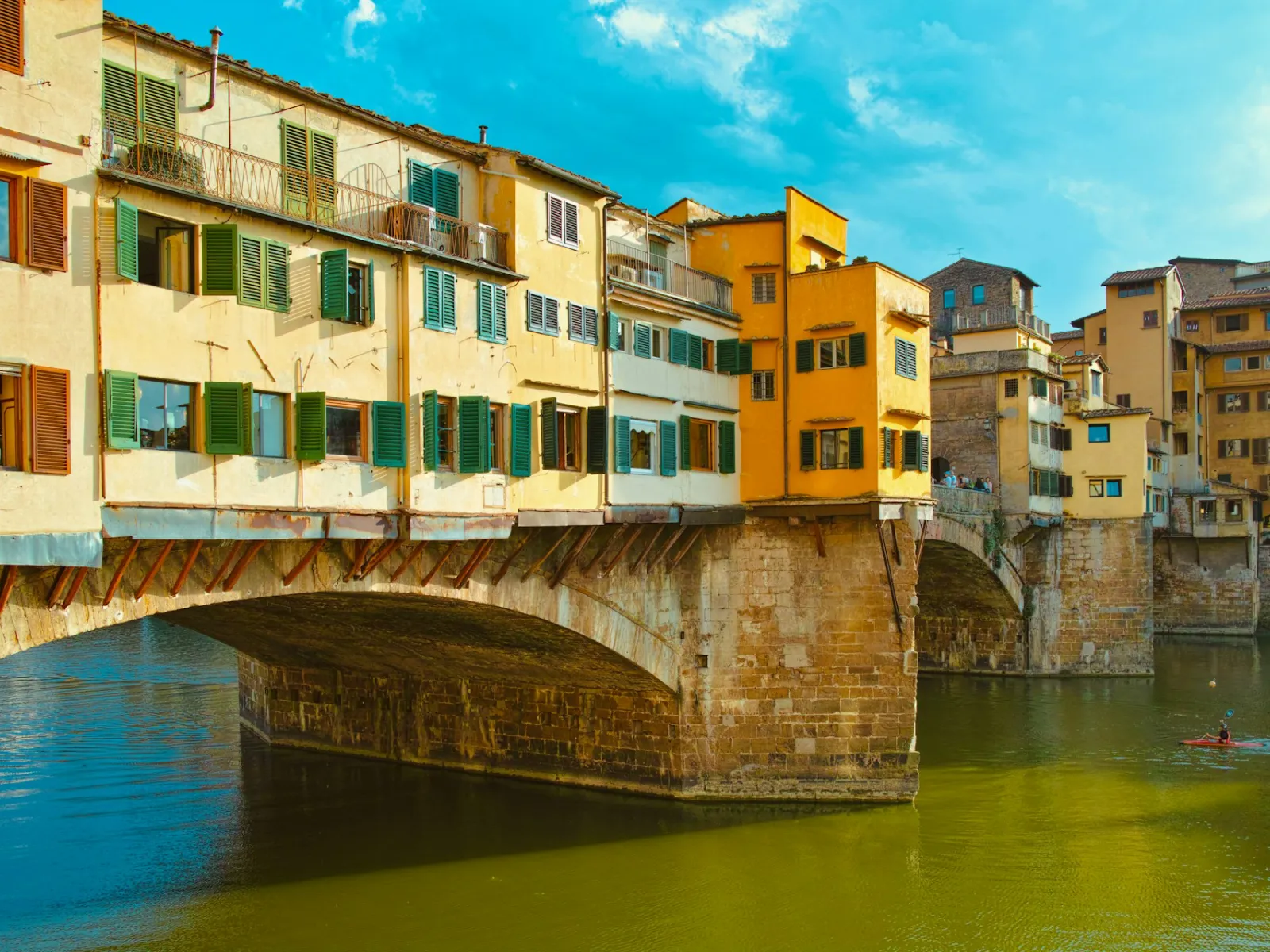 A ponte mais antiga de Florença, famosa por ter lojas construídas ao longo dela.