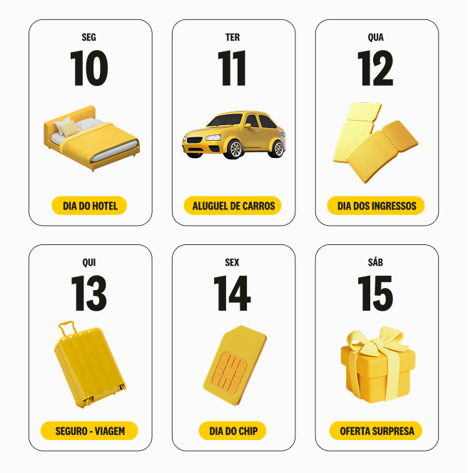 - Segunda-feira, 10/03/2025 - Dia do Hotel: 20% de desconto em destinos selecionados: Orlando, Miami e Buenos Aires dentro da plataforma Nomad Trips, com uso de cupom a ser divulgado.